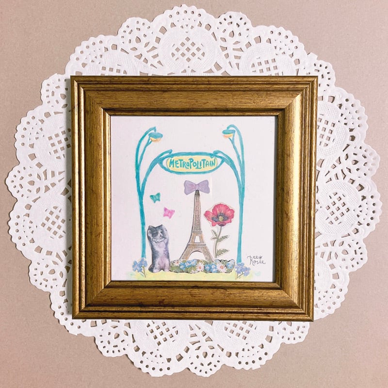 ミニ原画 kitten in Paris (フレーム付き)