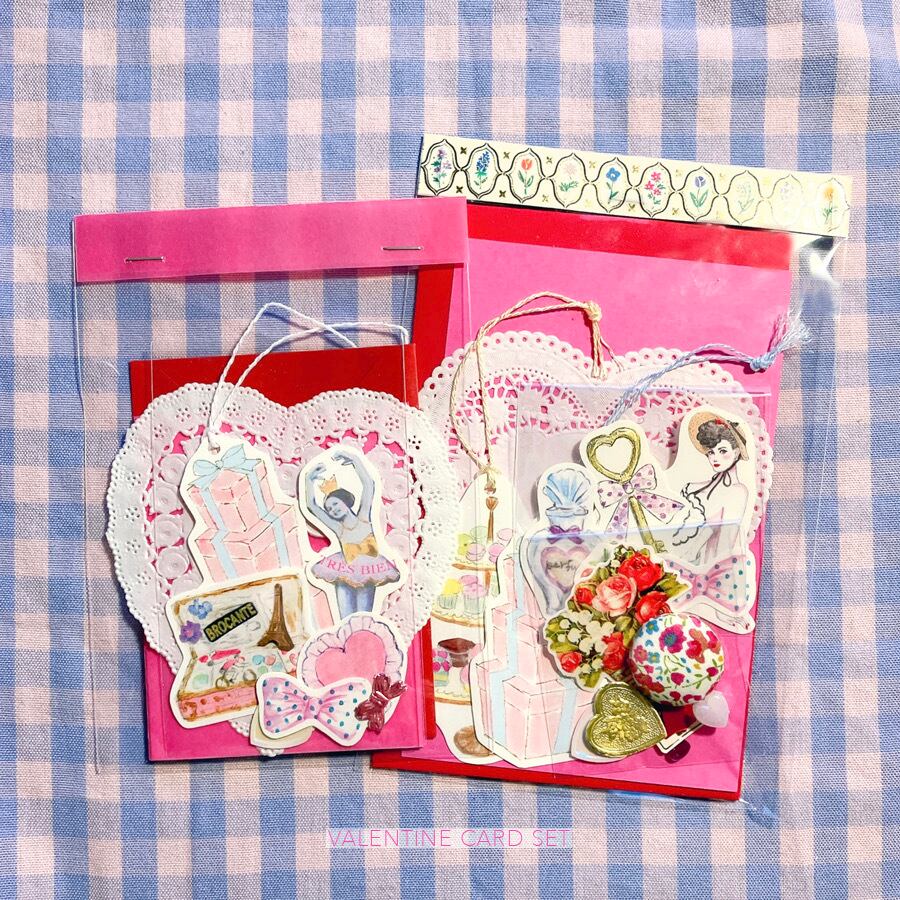赤などロマンティックなデザインのミニカードセット。